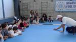 Giba questa volta è giunto in classe per un evento speciale: la nascita del sodalizio tra la Fondazione Villaggio Famiglia e la Scuola “ Nello Olivieri. Per l’occasione ha estratto dalla sua sacca il gioco dei “tappini “.