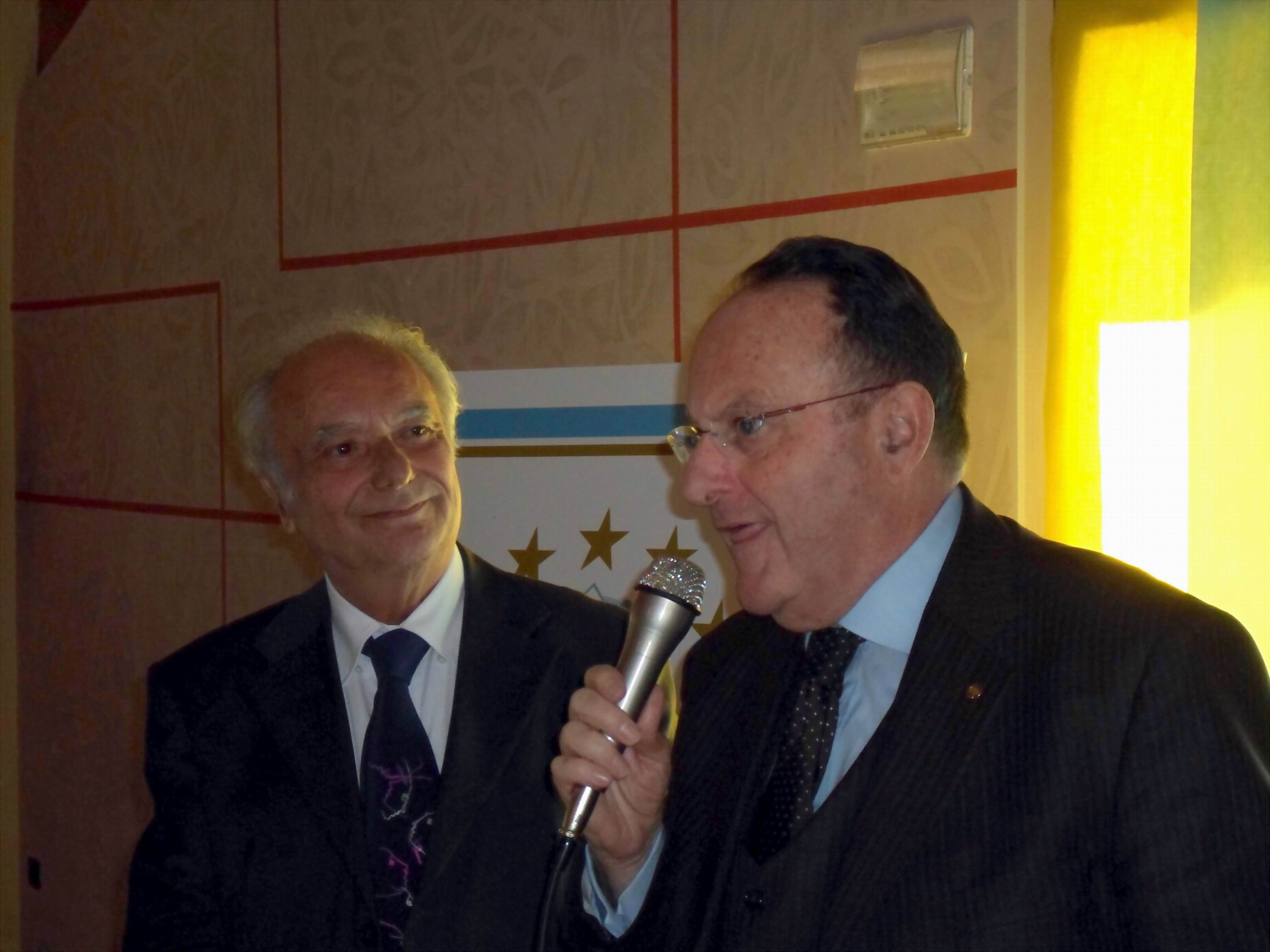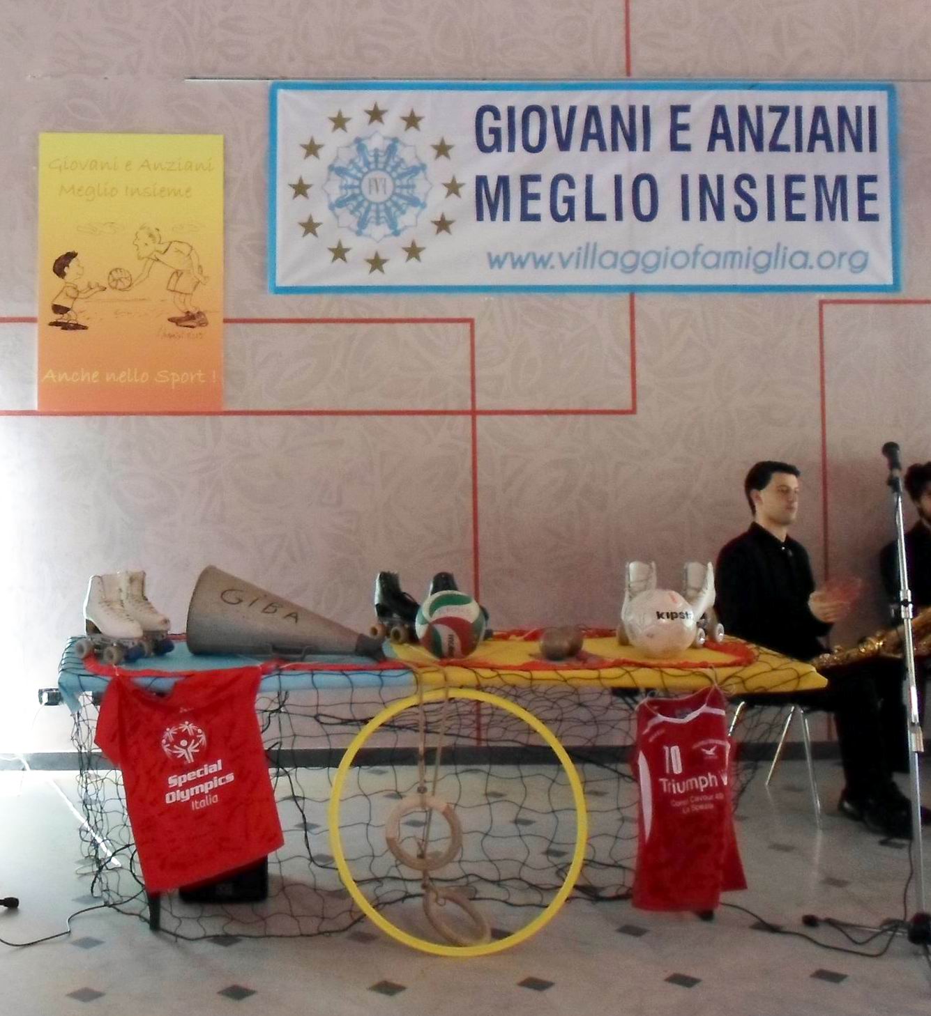 Sullo sfondo del salone la scritta “Giovani e Anziani Meglio Insieme” con accanto il poster-vignetta del famoso vignettista Luciano Luccarini, purtroppo impedito a presenziare, raffigurante un anziano sportivo che passa il pallone ad un bambino. Così il maestro Luccarini, col suo tratto sagace ed acuto, ha rappresentato la filosofia della Fondazione Villaggio Famiglia Onlus che da oggi è entrata anche nel mondo dello sport.