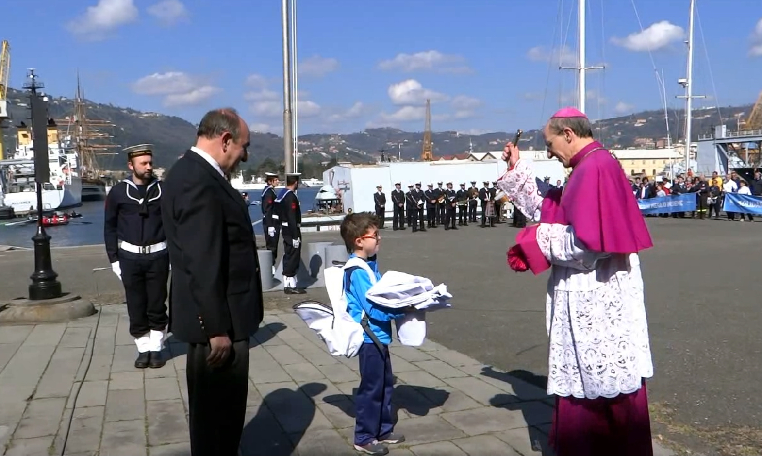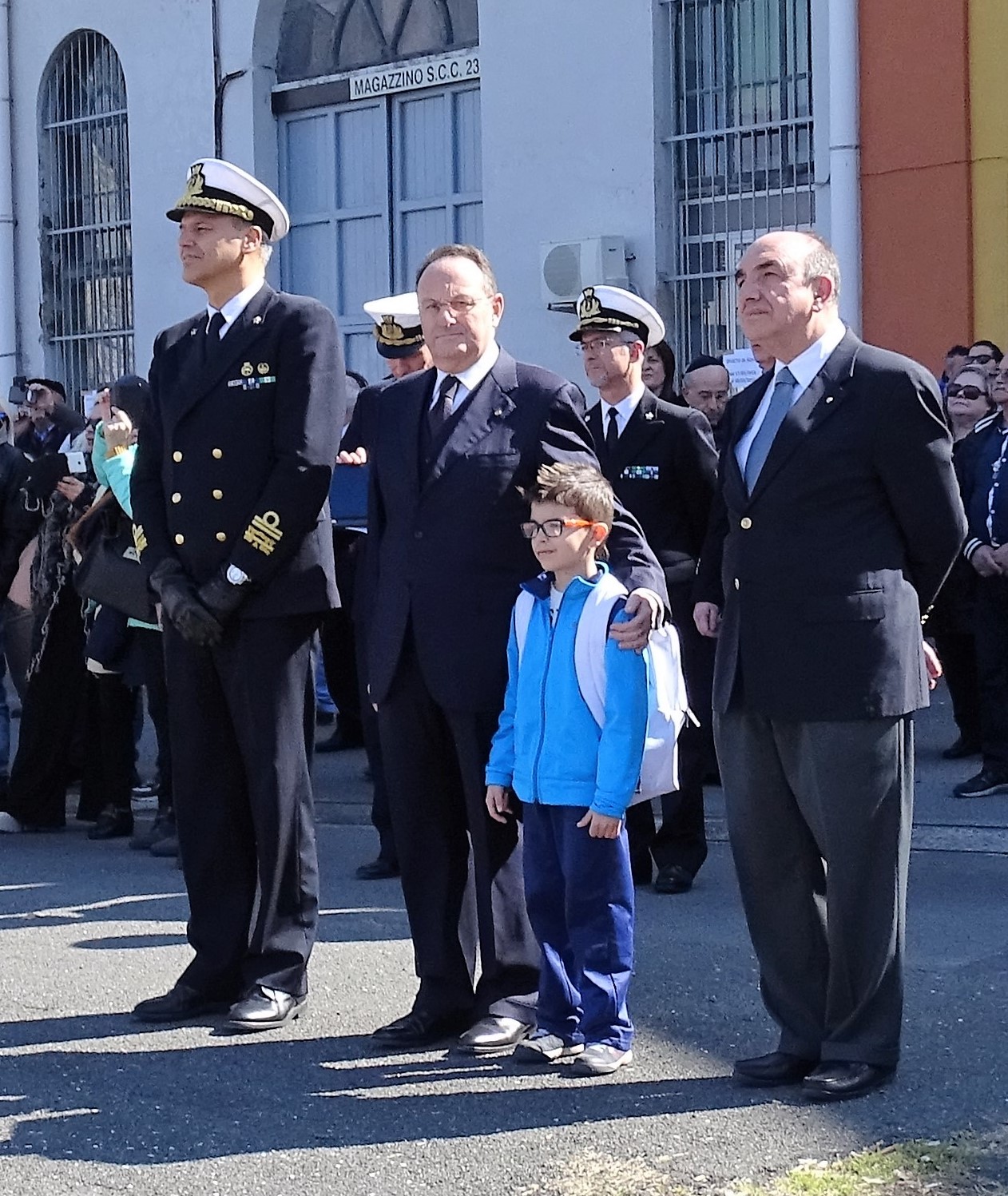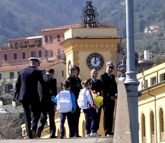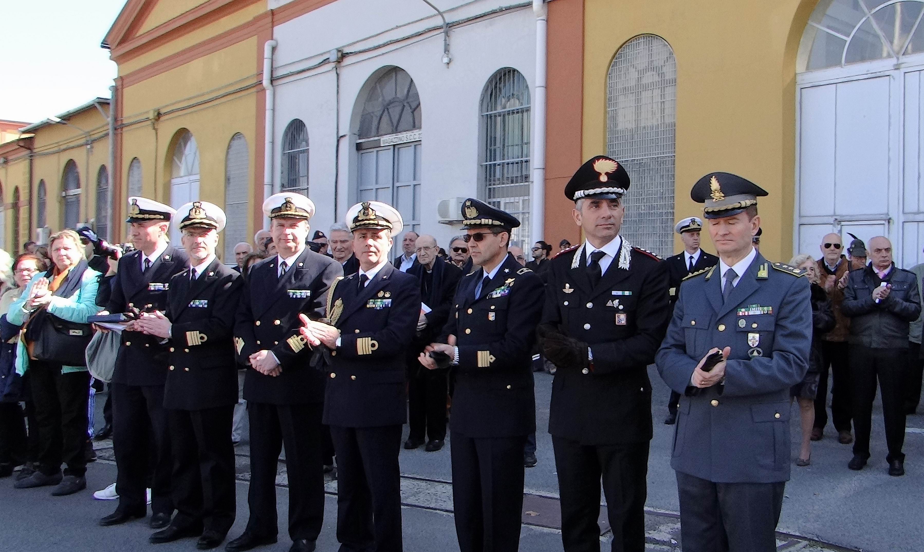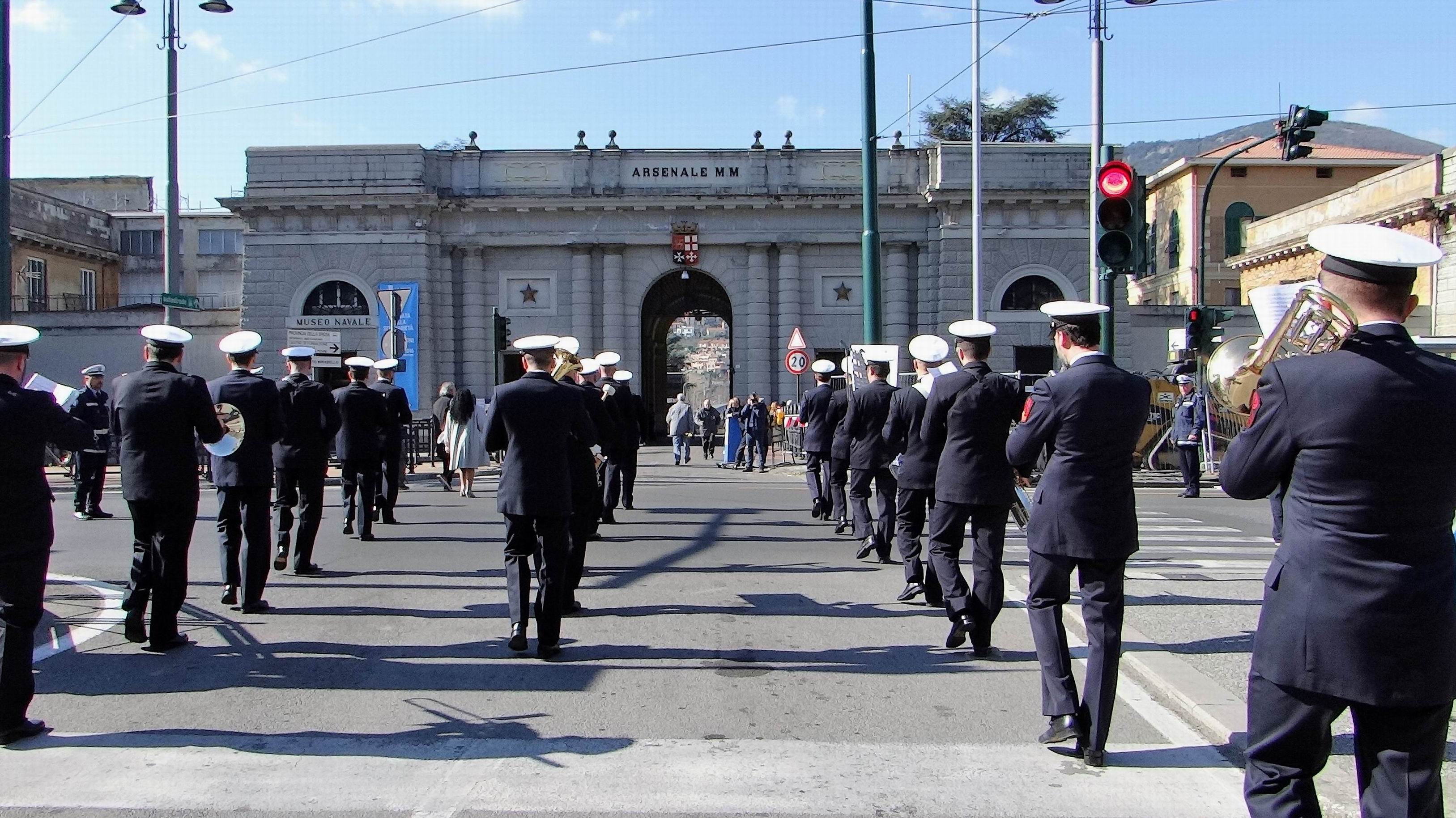 L’ingresso marziale verso l’Arsenale Militare, scandito dalla Banda della Marina al suono della “ritirata”, ha visto l’uno accanto all’altro, visibilmente commossi, il Presidente della Associazione Il Golfo e la Cultura del Mare Ammiraglio Andrea Toscano ed il Presidente della Fondazione Villaggio Famiglia Bruno Dal Molin, promotori dell’evento.