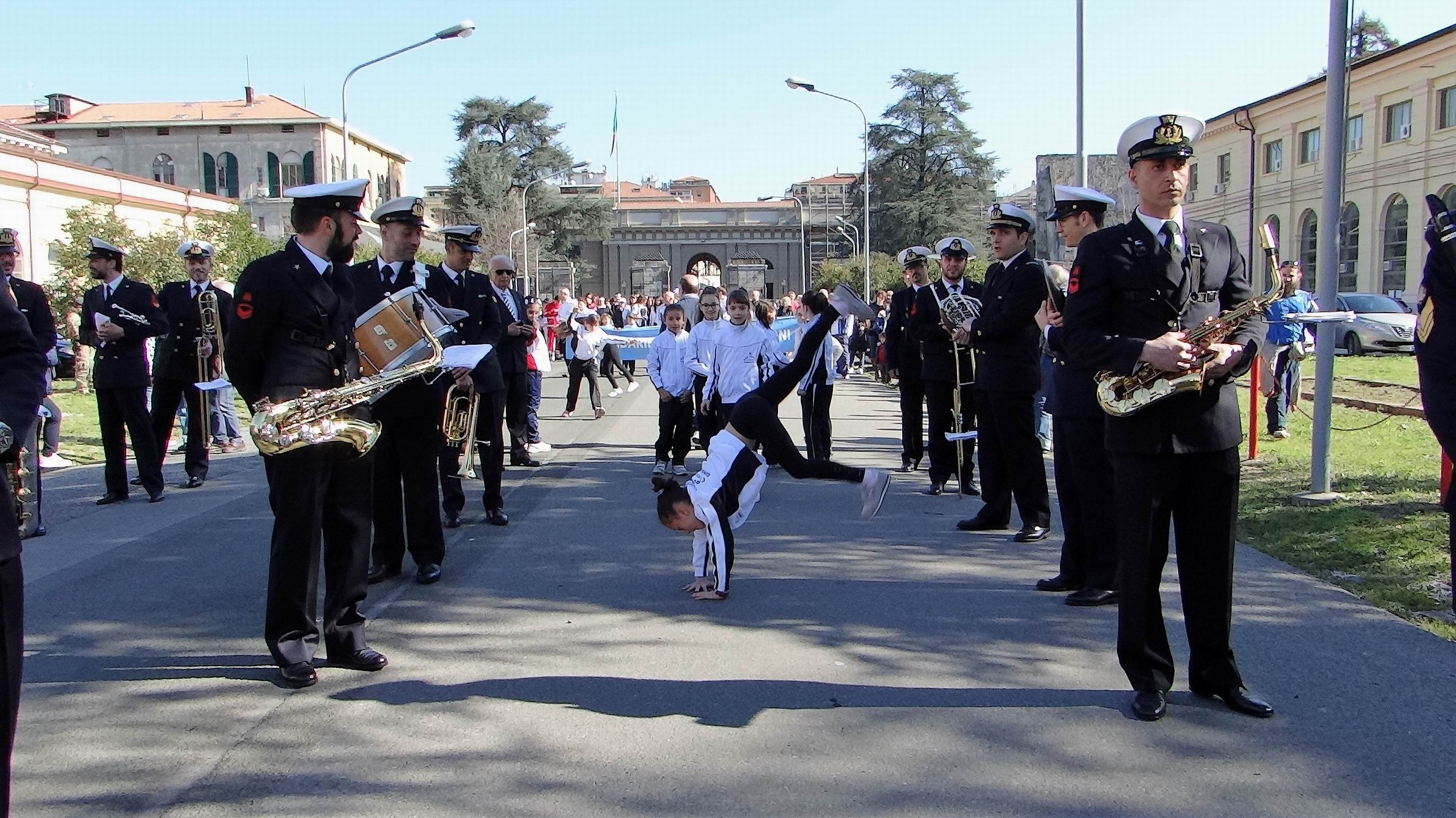 Al Ponte Girevole si è arrivati in corteo dopo aver sfilato nelle vie cittadine al seguito e sulle note della gloriosa Banda della Marina Militare. Coordinatrice della logistica del corteo la nostra collaboratrice Maria Teresa Penza coadiuvata da Maurizio Fontanelli, da Romano Guani e dal nostro consigliere Giorgio Scotto, mentre Giancarlo Guani ha guidato ed animato gli atleti.