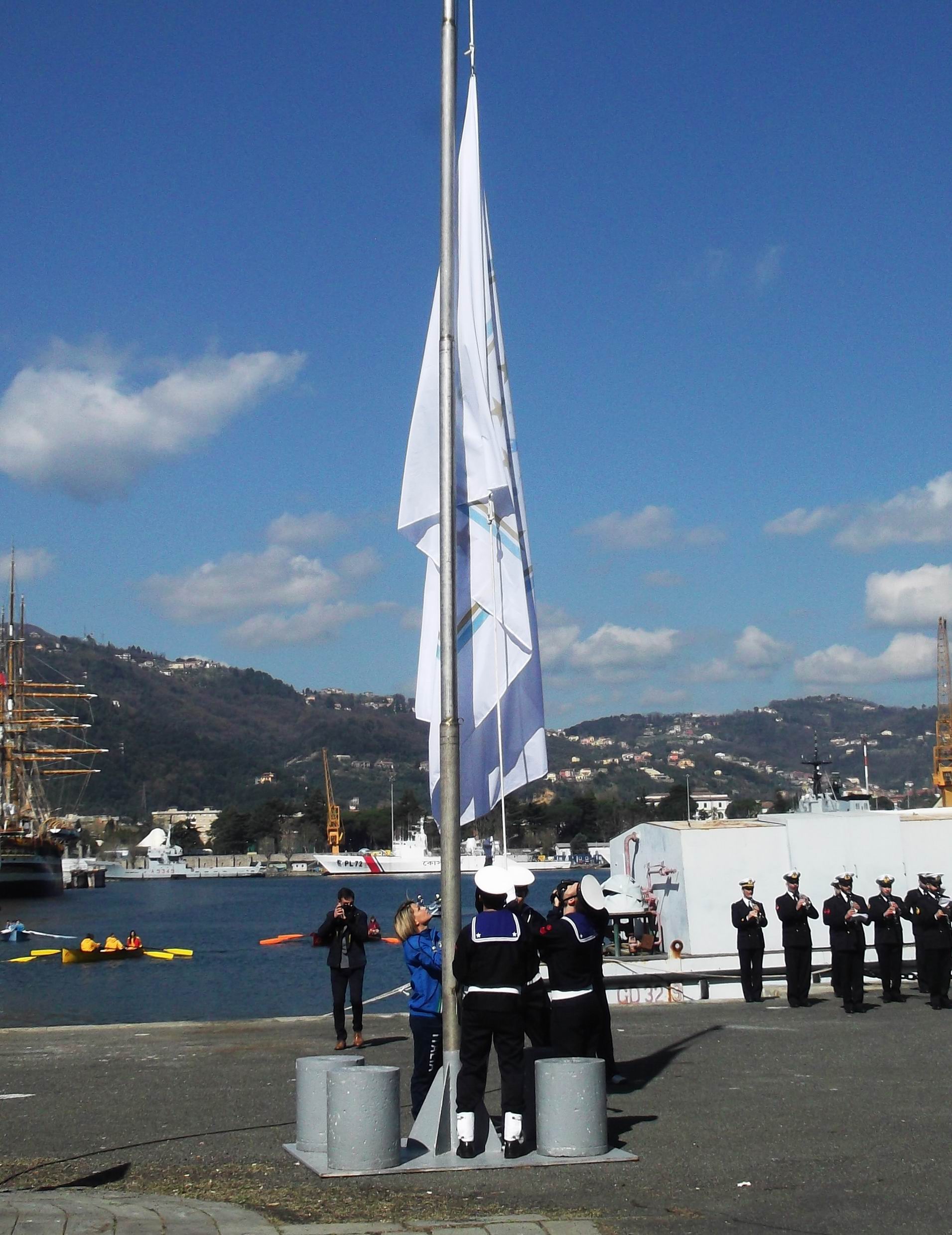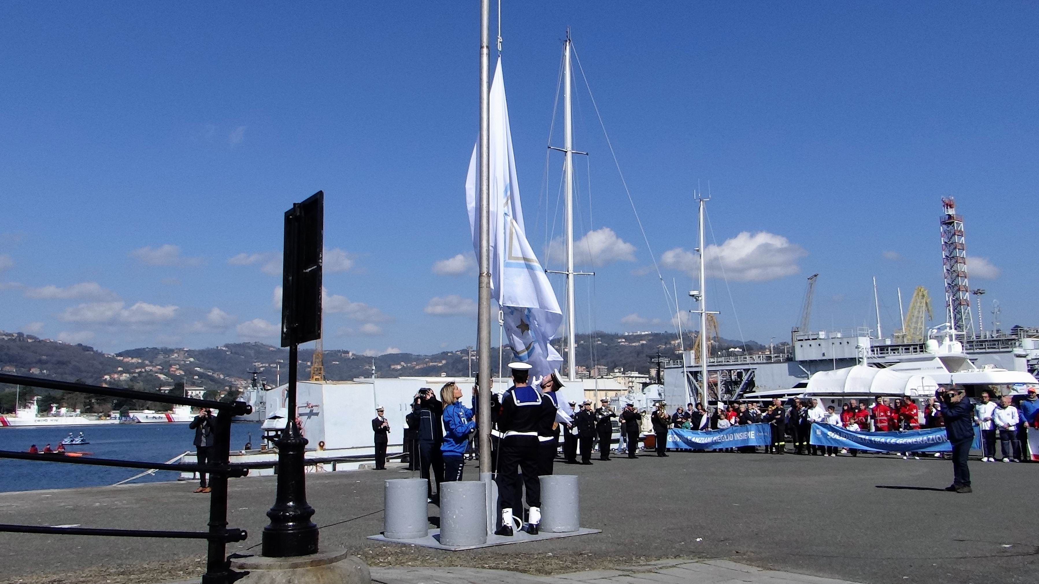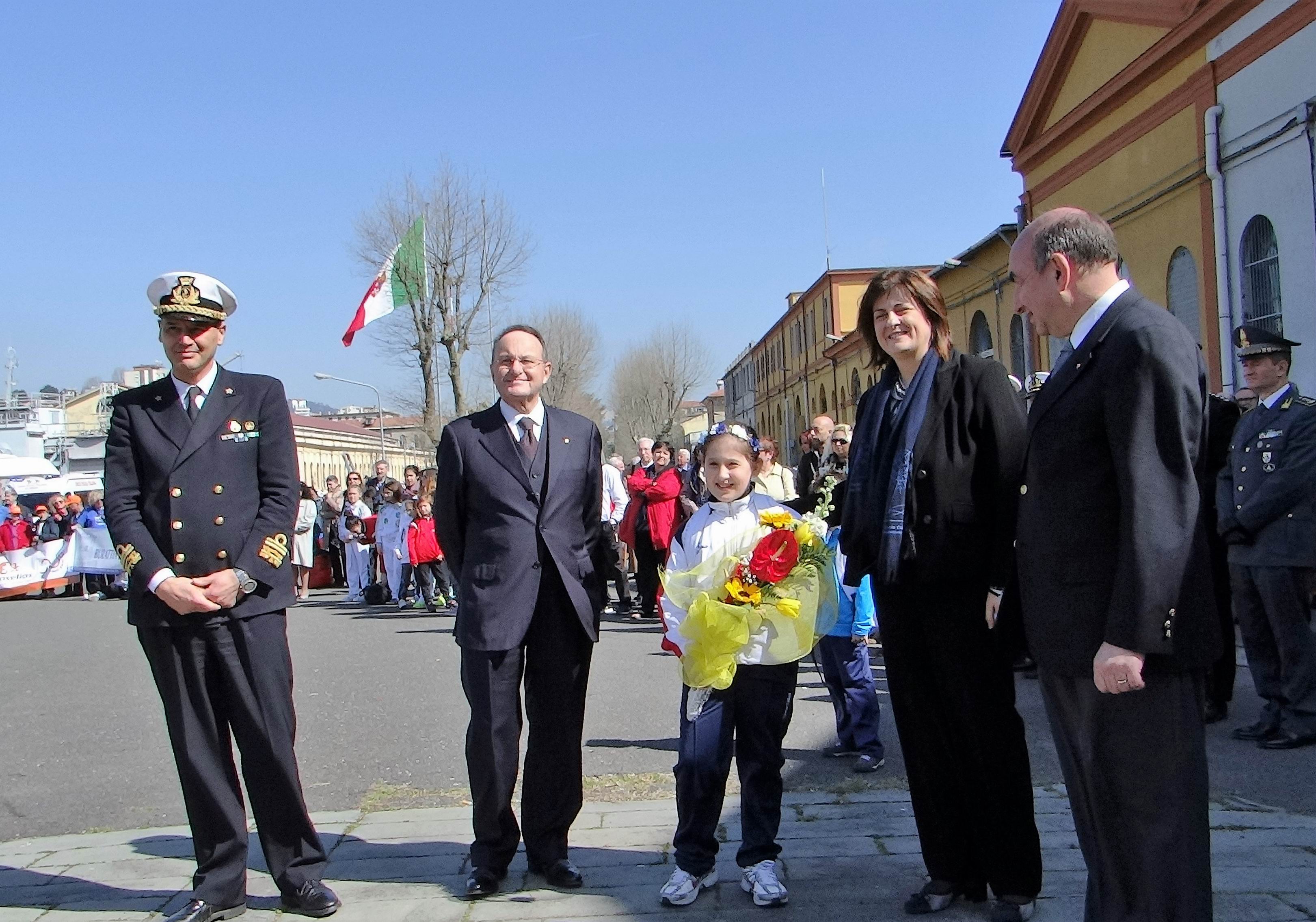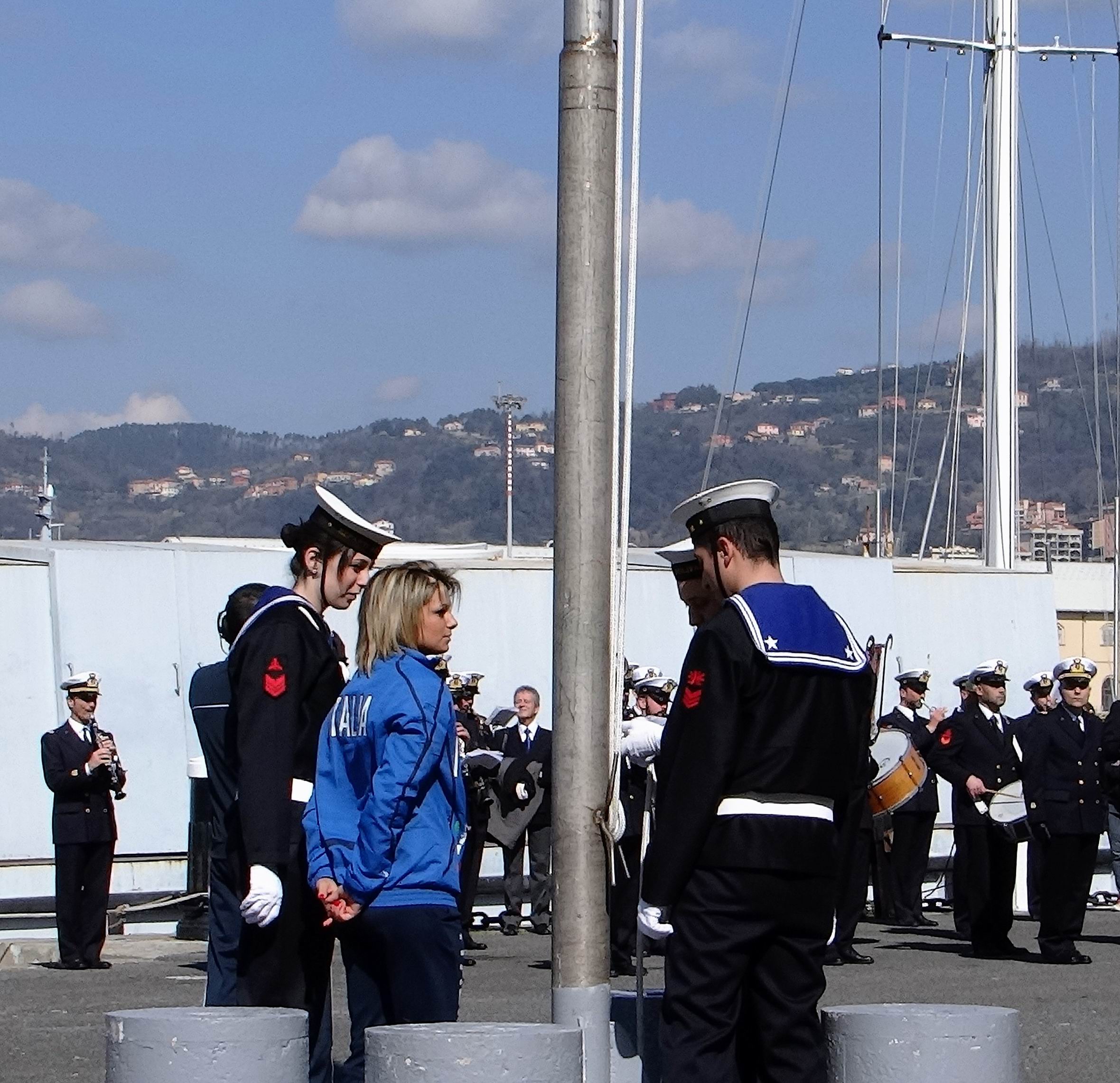 La benedizione del vessillo della Fondazione da parte di S.E. Mons. Luigi Ernesto Palletti ha dato inizio alla cerimonia ufficiale, che ha visto levarsi al cielo il nostro vessillo per mano dell’atleta Silvia Lambruschi e del picchetto d’onore della Marina Militare. Sono poi seguiti i discorsi rituali dell’Ammiraglio Toscano, dell’Ammiraglio Camerini e del Prefetto Lubatti.