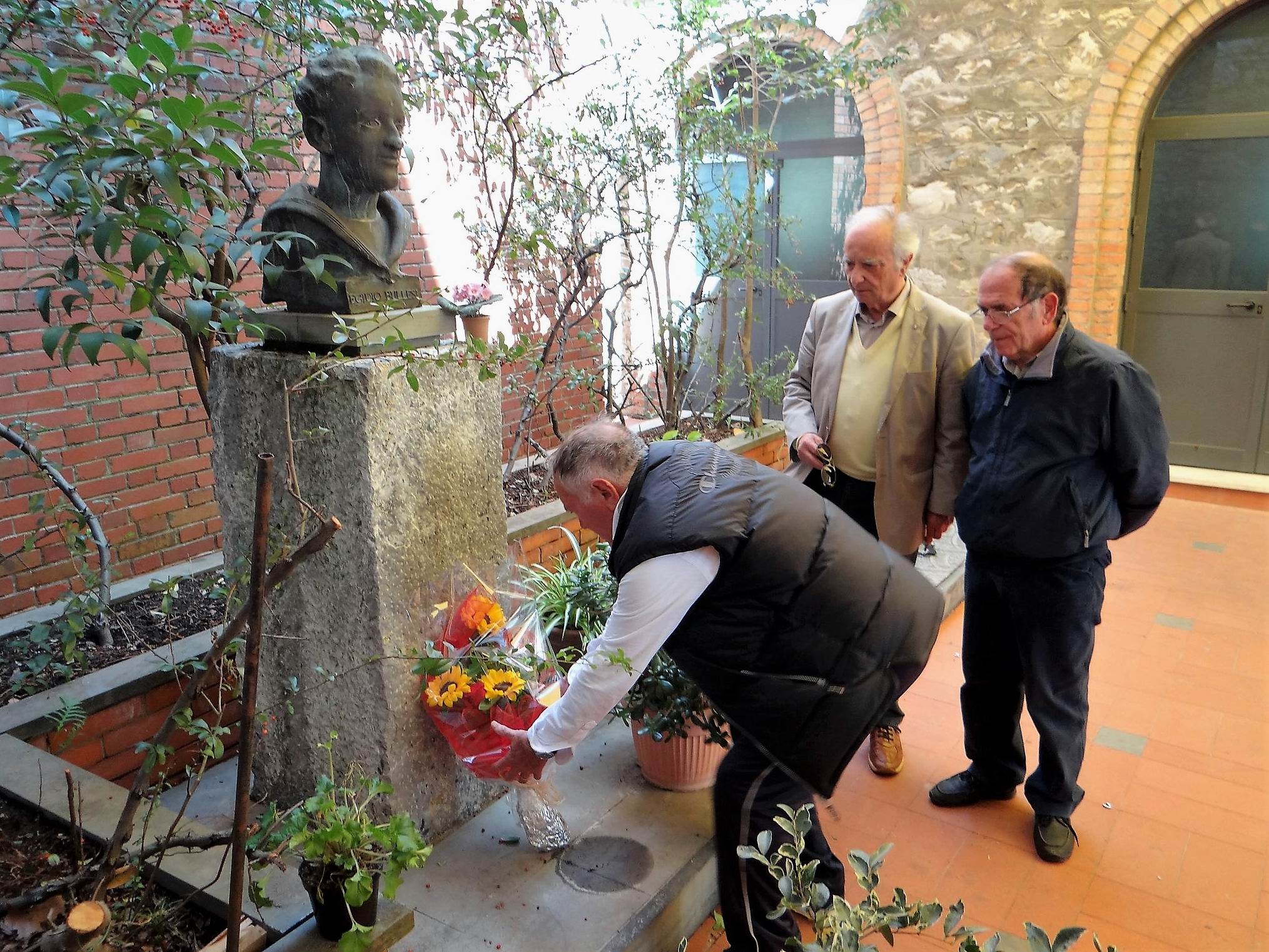 Romano Guani deposita i fiori ai piedi del busto del venerabile Egidio Bullesi