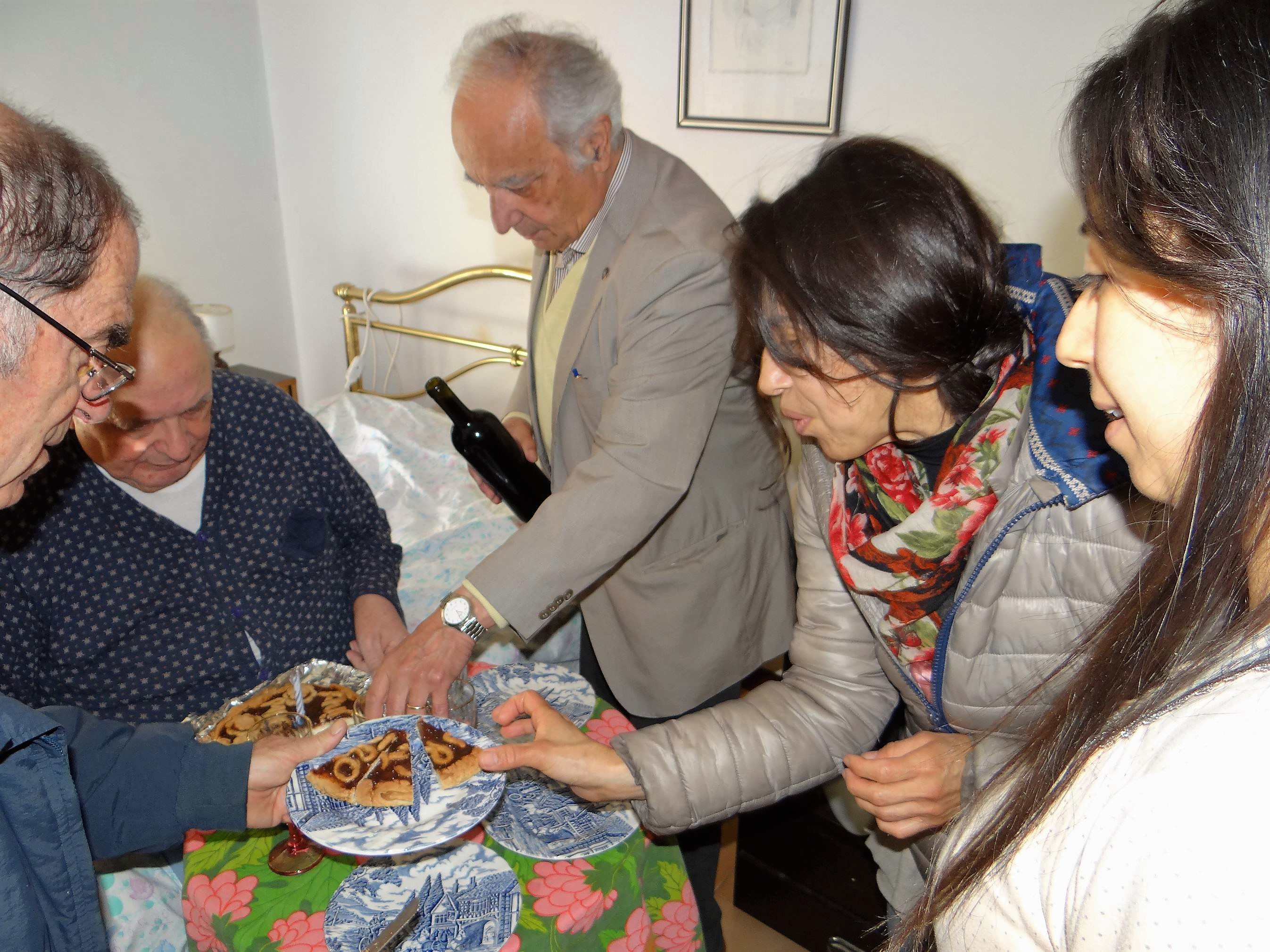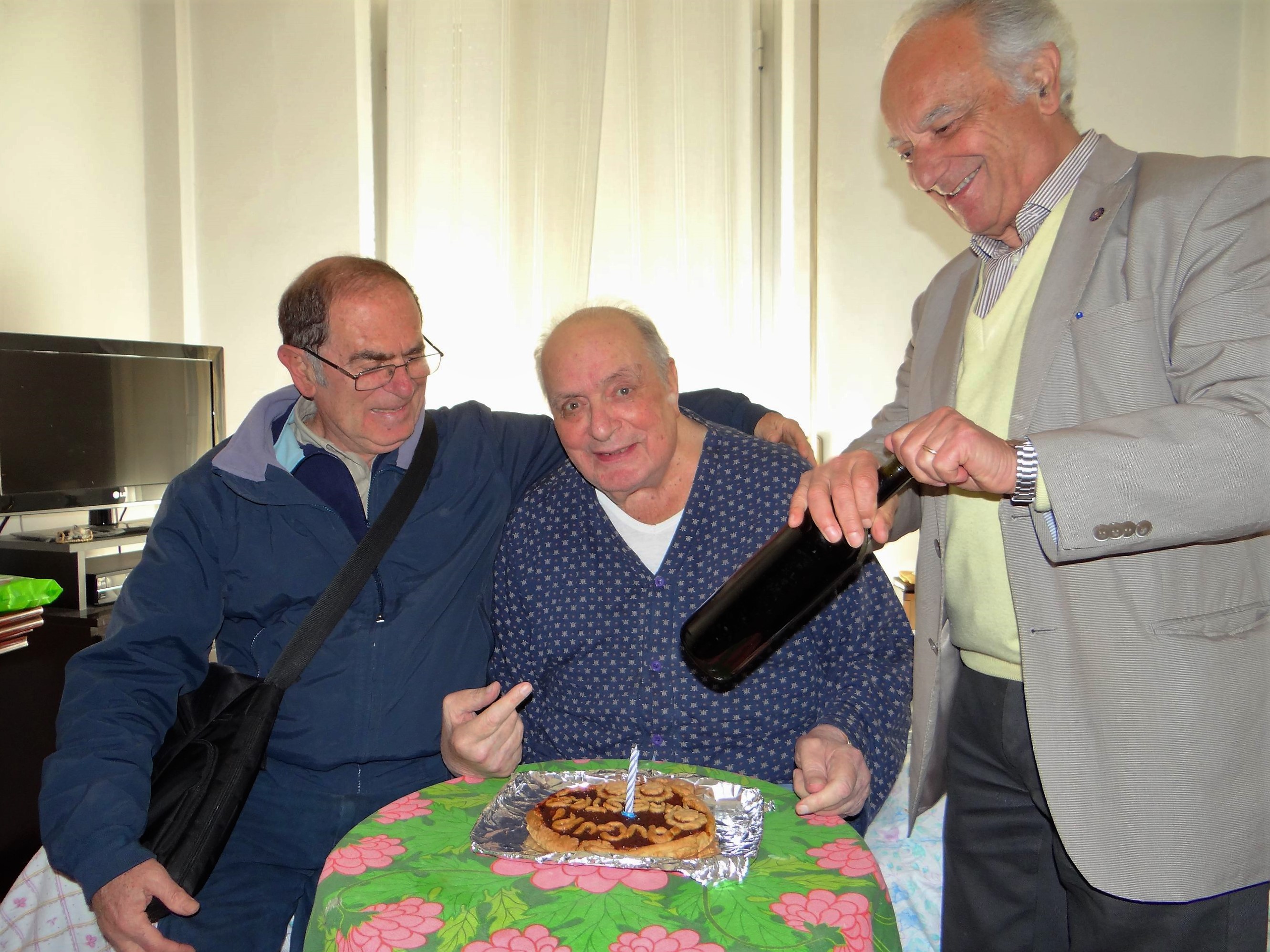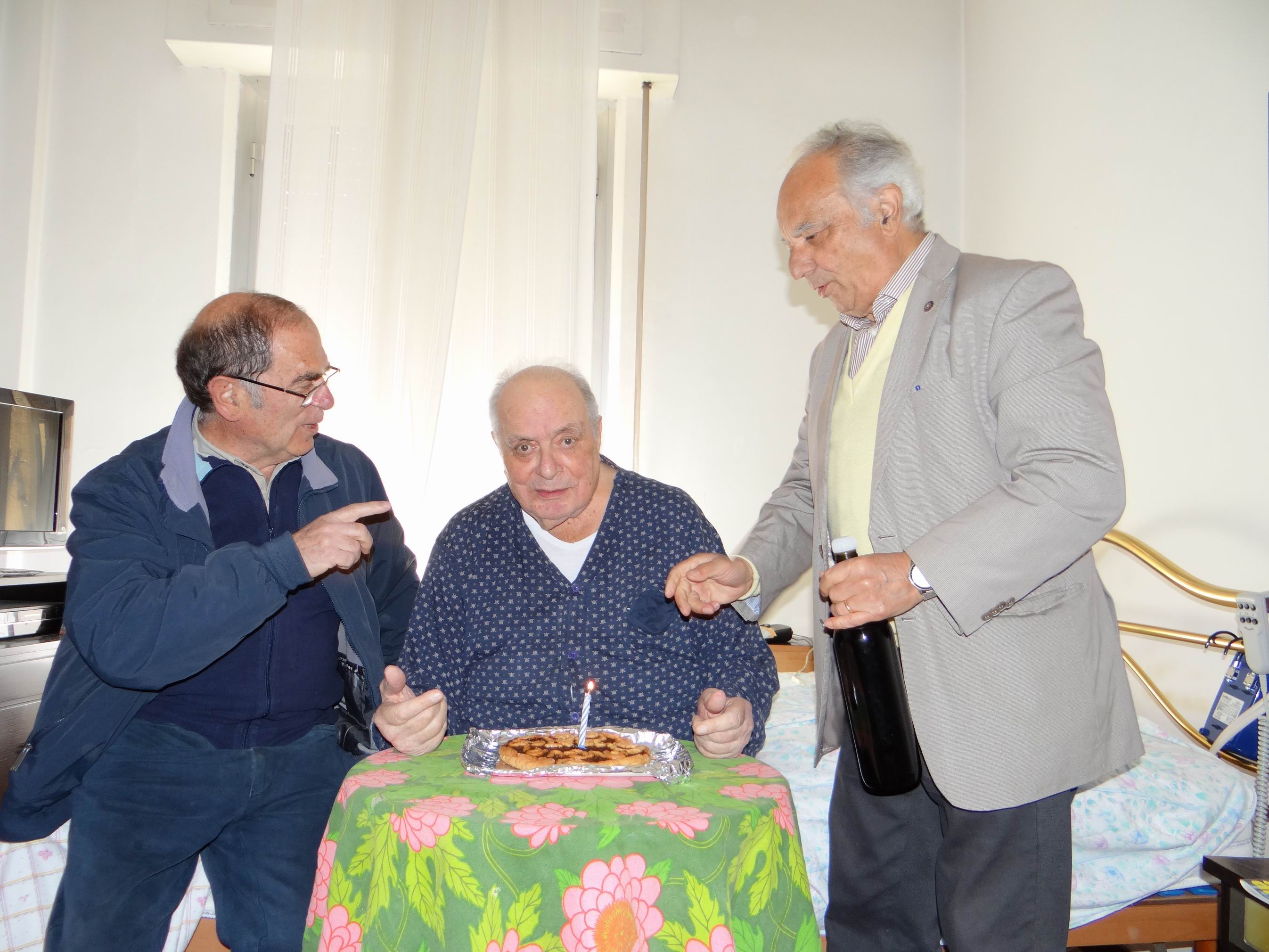 Oggi, quando gli abbiamo portato gli auguri di buon compleanno, ci ha accolti col suo consueto sorriso e con le sue allegre battute, come se il tempo non fosse trascorso ed il mondo si fosse fermato sulle sue gote rosee e sul suo sguardo sorridente ed arguto.