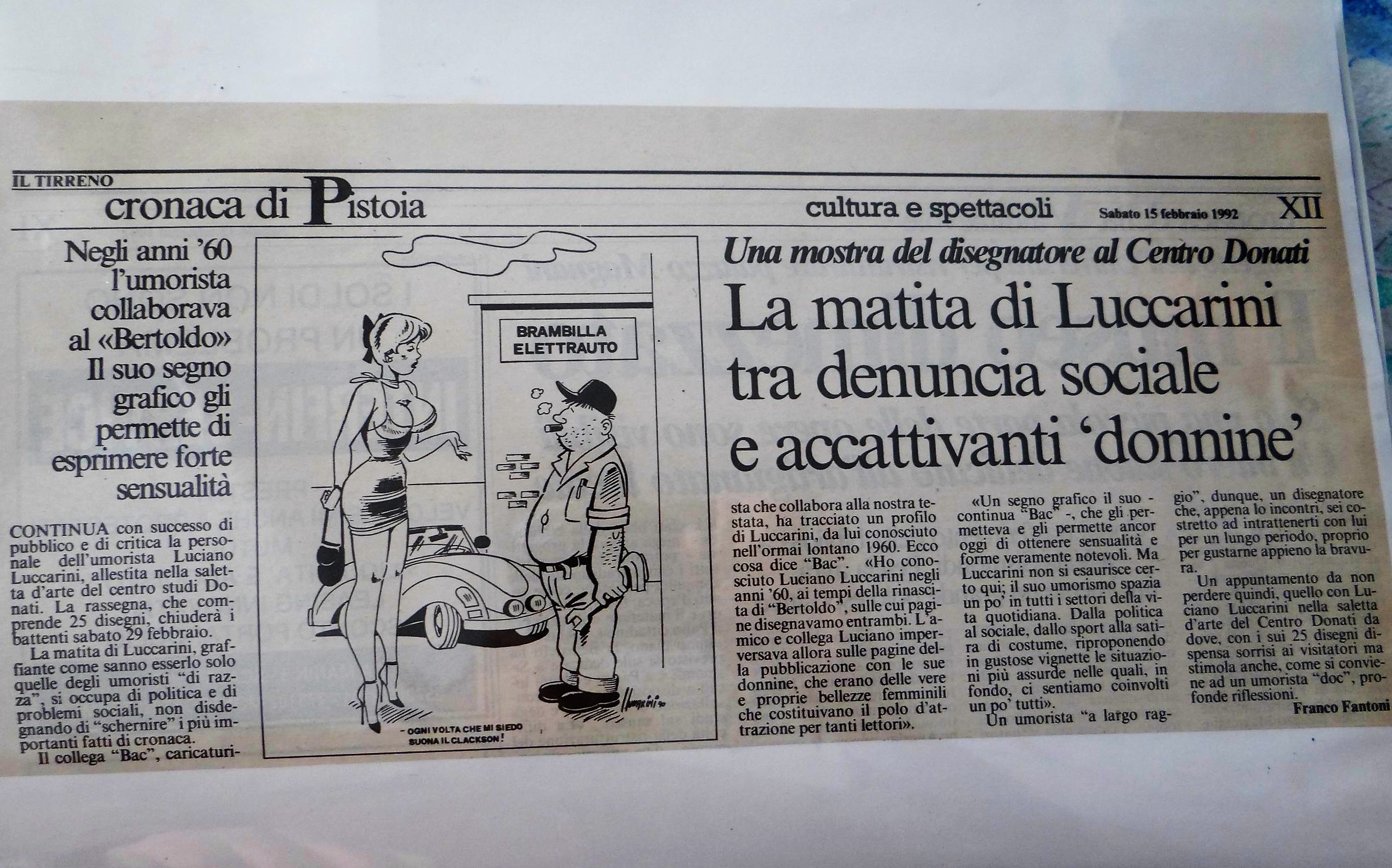 Il 25 aprile 1931 nasceva a Camporgiano (LU) Luciano Luccarini, l’arguto ed ironico vignettista caricaturista, pungente cronista della nostra società. Grafico dal segno sicuro e pungente, maestro di satira e di allusioni simboliche, ci ha illustrato il mondo che ci circonda ed il trasformarsi della nostra società in oltre mezzo secolo di brillante carriera.