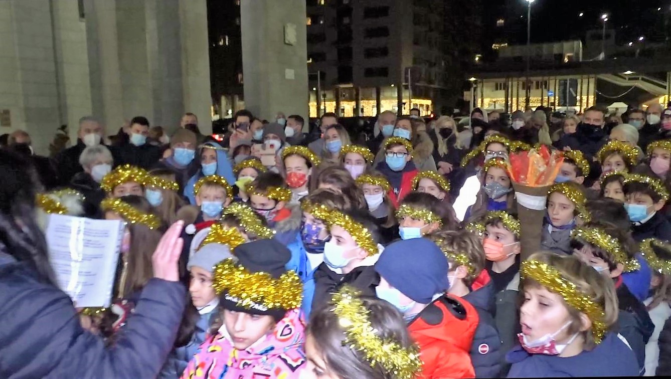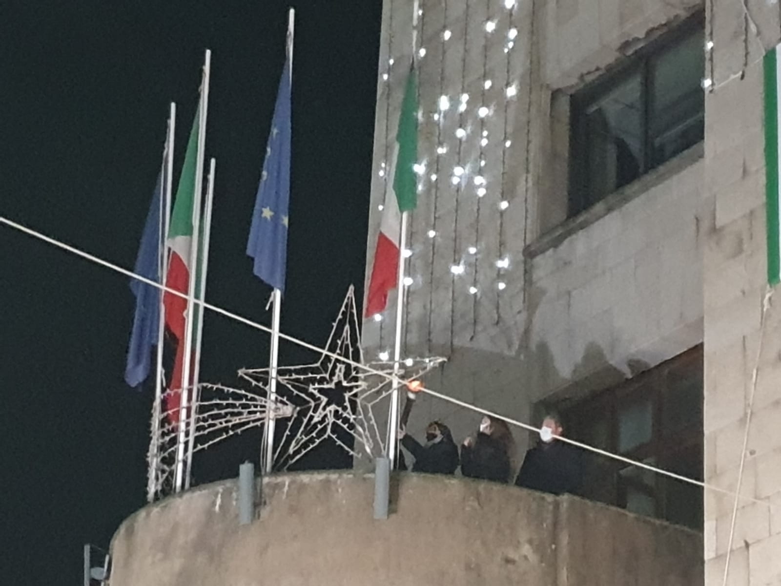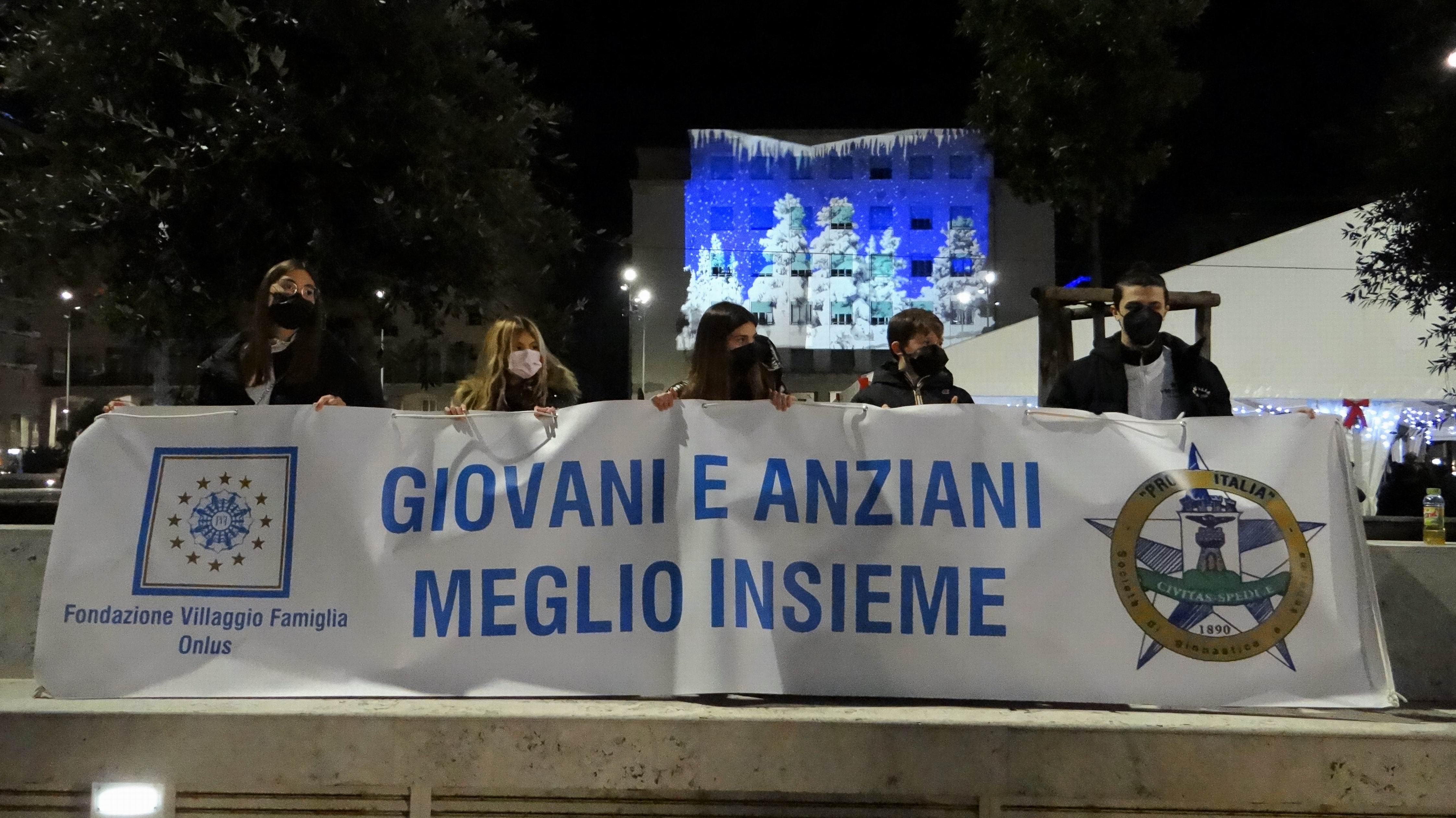 La Spezia 18 dicembre 2021 sull’arengario del palazzo comunale si accende ancora una volta, per il Santo Natale 2021, la Grande Stella della Solidarietà fra le Generazioni, l’evento che la Fondazione Villaggio Famiglia celebra in comunione d’intenti con il Comune della Spezia. L’articolata cerimonia è iniziata presso la Cattedrale della Spezia con la celebrazione della Liturgia Natalizia della Famiglia per ministero di Don Luca Palei, parroco della parrocchia dei Santi Giovanni e Agostino, direttore della Caritas e responsabile della Pastorale giovanile, con la partecipazione di tante famiglie e con i cori degli allievi dell’Istituto Pia Casa di Misericordia.